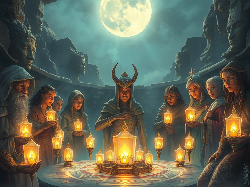 They met under a new moon, lit by fireglass lanterns and ancestral breath.